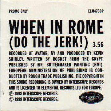 Track Listing When In Rome (Do The Jerk!) Notes Promo only CD single released in Europe. Comes in a cardboard slipcase.